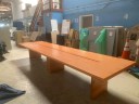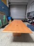 15 Ft x 4 Ft Rectangular Table (2 Piece Top) With Wooden Flip Door Access Power Modules, Trough, (2) Panel Bases & (1) Rectangular Base With Access Door. Warm Maple Wood. Beveled Edge
