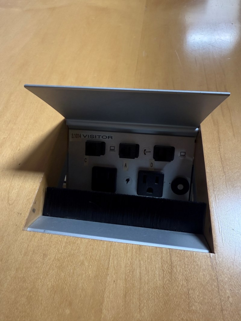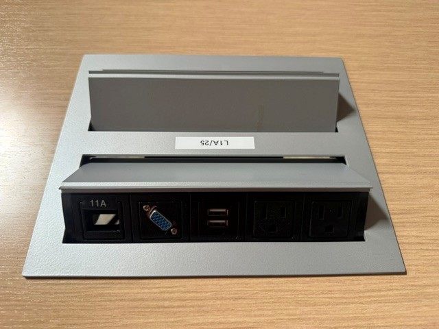 For new or used conference tables which do not already have power and data modules installed as specified in the caption below each picture, we can provide cutout service for power and data modules shown below. |