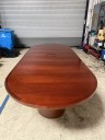 10 Ft x 4 Ft Racetrack Table (2 Piece Top) With (1) Flip Up Wooden Door Access Power & Data Module & (2) Drum Bases. Cherry Wood