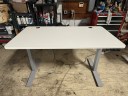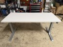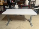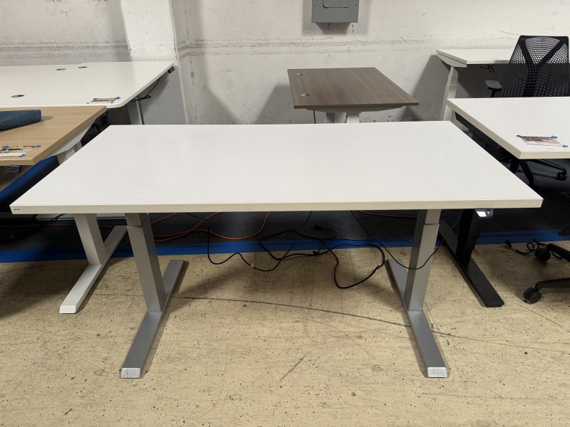 Steelcase 60W x 30D Electric Height Adjustable Sit Stand Table In White Laminate Top With 3 Stage Silver Finish Legs. Height Adjusts From 23H To 48.5H.