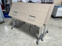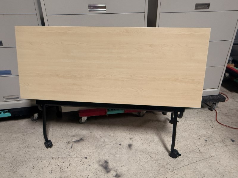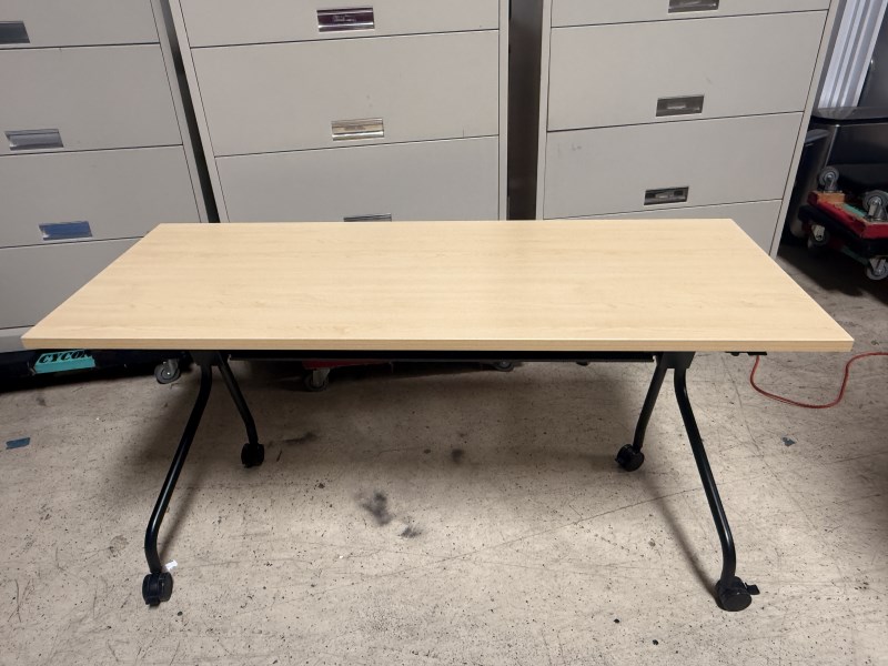 Bernhardt 60W x 24D x 29H Mobile Folding Nesting Training Table With Flip Door Access Power Module. Light Maple Wood Top & Folding Aluminum Base With Lockign Casters