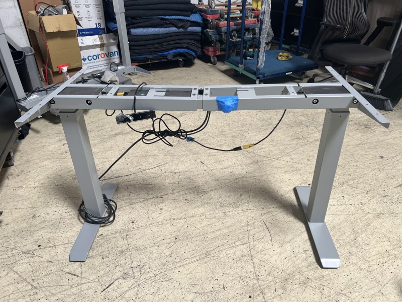 AMQ Electric Height Adjustable Table Base Only. 4 Programmable Setting, Height Adjusts From 27H To 46.5H Without Top. 3 Stage Silver Metal T Legs