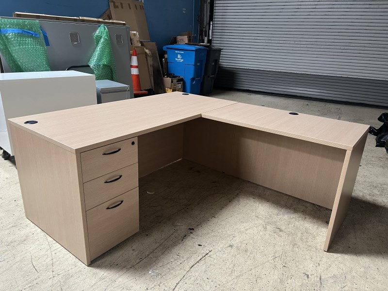 Napa Series 66W x 72D L Shaped Desk With 66W x 30D Main Desk With Box Box File Pedestal & 42L x 24D Right Return Shell (Reversible). Natty Ash Laminate