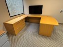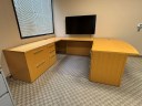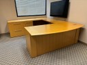 Woodtech Bow Front U Shaped Desk In Maple Wood Includes 72L x 30D & 36D Bow Front Box Box File Pedestal Main Desk, 48L x 24D Left Bridge With Access Door & 90L x 24D Box Box File Pedestal & 2 Drawer Lateral U Credenza
