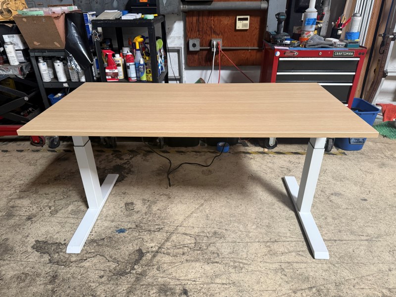 Autonomous SmartDesk Pro 48W x 24D Electric Height Adjustable Sit Stand Table. 4 Programmable Setting, Height Adjusts From 25.5H To 51H. Maple Laminate Top. 3 Stage White Metal T Legs