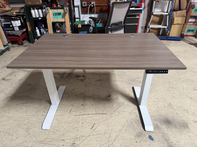 Autonomous SmartDesk Pro 48W x 24D Electric Height Adj Table. 4 Programmable Setting, Height Adjusts From 25.5H To 51H. Natty Ash Laminate Top. 3 Stage White Metal T Legs