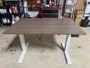 Friant 48W x 30D Electric Height Adjustable Sit Stand Table In Walnut Laminate. 4 Programmable Setting & (2) 2.5 Inch Chrome Finish Grommet Covers. Height Adjusts From 25.75H To 51.5H. 3 Stage White Metal T Legs.
