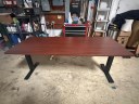 KI Toggle 70W x 29D Electric Height Adjustable Sit Stand Table In Cherry Laminate Top With 4 Programmable Memory Setting & 3 Stage Black Legs. Height Adjusts From 23H To 49H