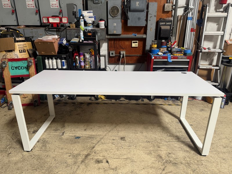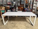 80L x 30D Work Table In White Laminate Top With 2.5 Inch Chrome Grommet Cover & (2) White Metal Loop Legs