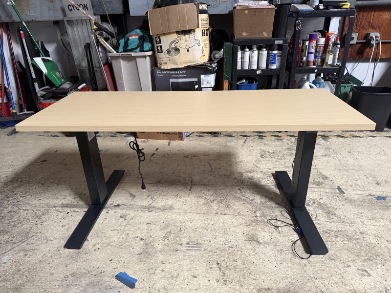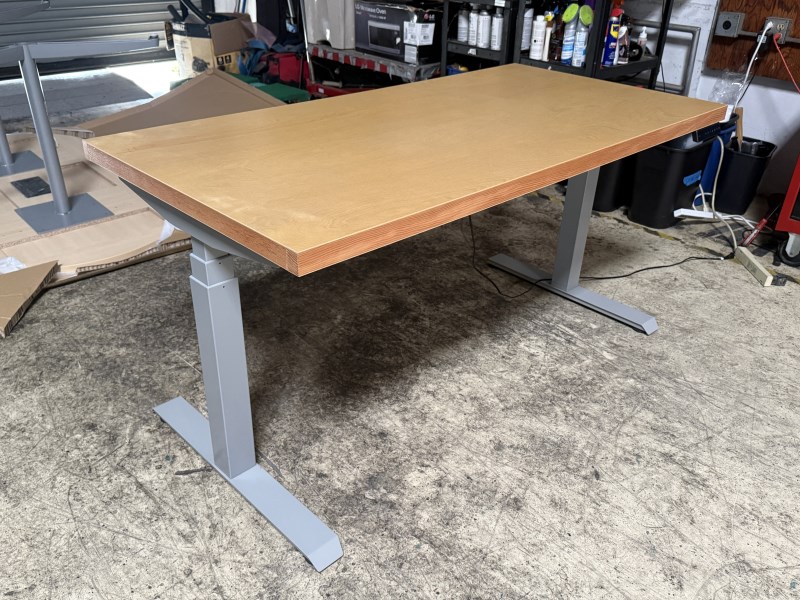 KI Toggle 60W x 23D Electric Height Adjustable Sit Stand Table In Herman Miller Maple Laminate Top With 3 Stage Black Legs. Height Adjusts From 25.5H To 51.5H