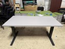 Herman Miller 58W x 29D Electric Height Adjustable Sit Stand Desk In Grey Laminate Top & 3 Stage Black Metal Legs. Height Adjusts From 22.25H To 48.5H