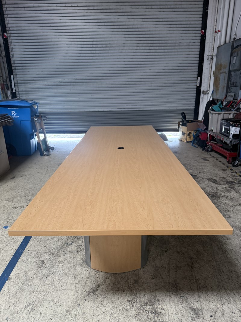 Ideal Manufactuing 16 Ft x 4 Ft Rectangular Table (2 Piece Top), (2) Power & Data Modules. (3) Box Bases. Access Door On 1 Base. White Oak Quarter Cut Veneer