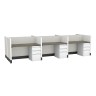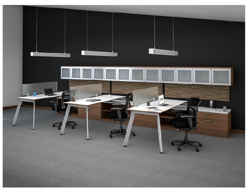 SIS Six Pack Telemarketing Workstations With 67H Full Fabric Panels With Overhead Cabinets In White & Urban Walnut *New* *Special Order*
