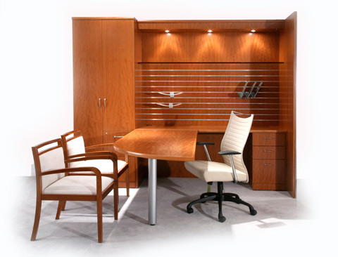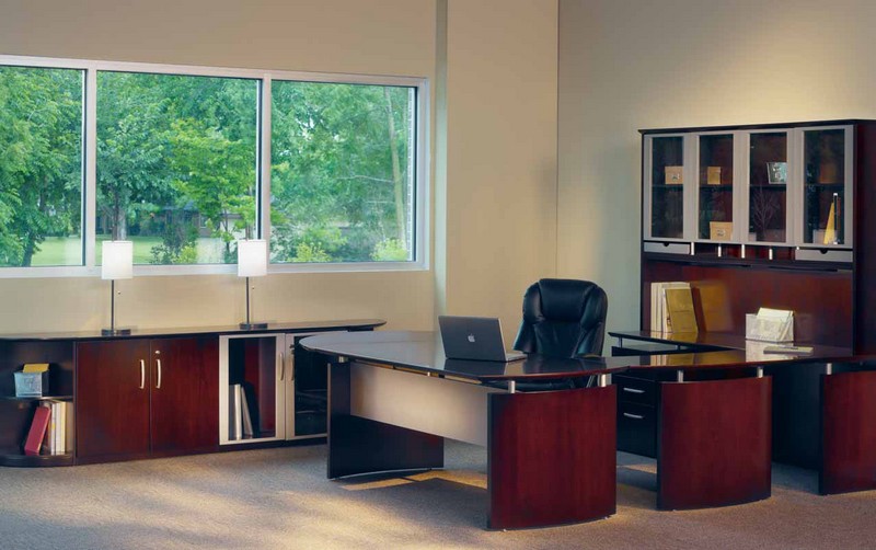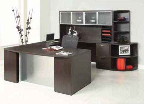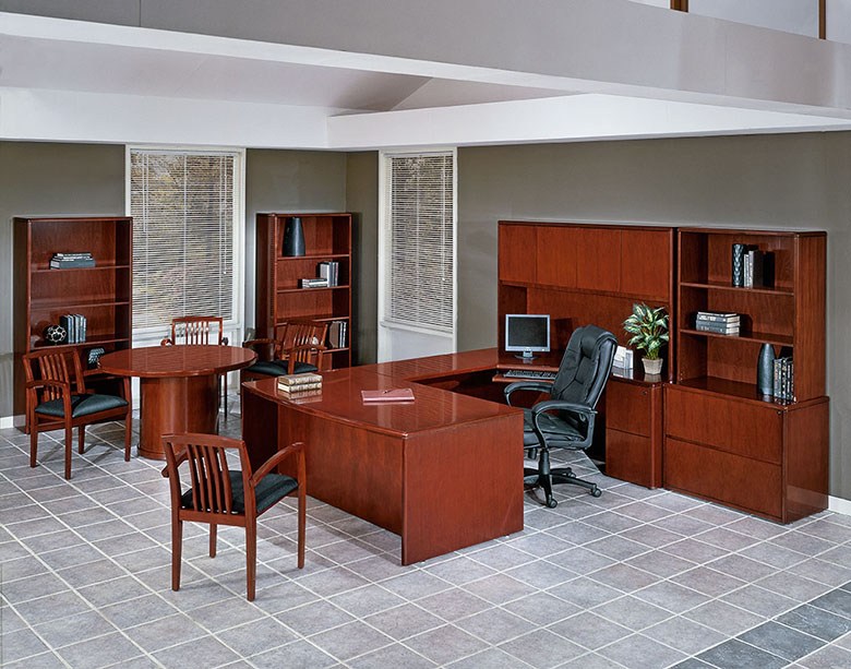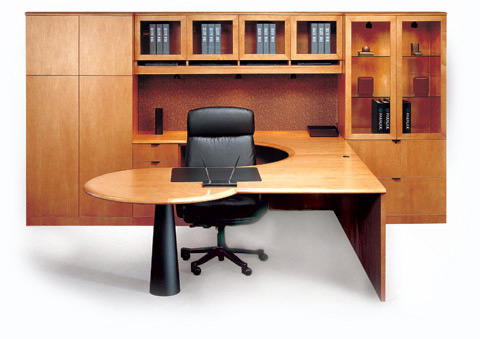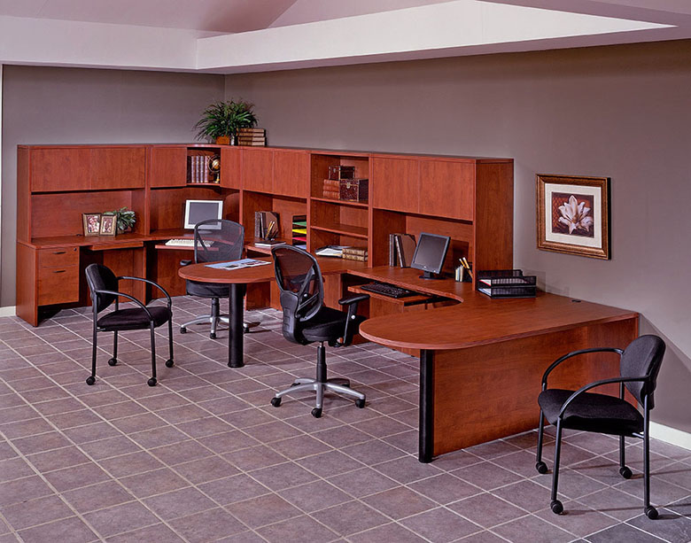 Kenwood Teardrop U Shaped Desk With Hutch in Light Cherry Wood |