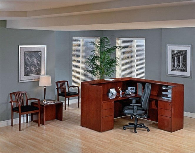 Creative Wood Custom Arc Square Cherry Reception Station With Granite Transaction Top |