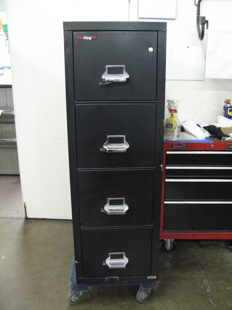 Fireking 41831C Fireproof Four Drawer Letter Size Vertical File in Black. 17.75W X 31.5D x 52.75H. 605 Lbs