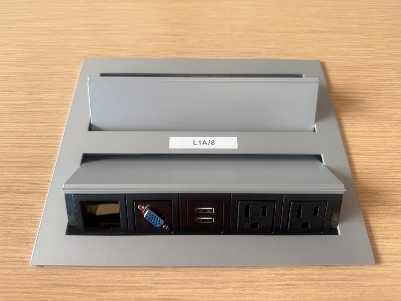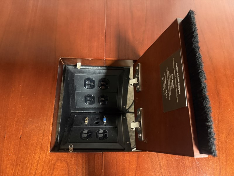 For new or used conference tables which do not already have power and data modules installed as specified in the caption below each picture, we can provide cutout service for power and data modules shown below. |