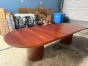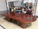 10 Ft x 4 Ft Racetrack Table (2 Piece Top) With (1) Flip Up Wooden Door Access Power & Data Module & (2) Drum Bases. Cherry Wood