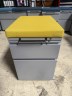 Herman Miller 14.75W x 19.5D x 23.5H Box File Mobile Pedestal In Metallic Silver Grey With Yellow Fabric Removable Cushion, Black Handle & Casters